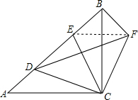 分析 根据等腰直角三角形的性质得到∠A=∠ABC=45°,证得∠ACD=∠BCF,推出△ACD≌△BCF,根据全等三角形的性质即可得到CD=CF,故①正确;根据等腰三角形的性质即可得到CE垂直平分DF,故②错误;由△DCF是等腰直角三角形,得到DF=$\sqrt{2}$CD,根据勾股定理即可得到BD2+AD2=2CD2,故③正确;连接EF,根据CE垂直平分DF,得到DE=EF,根据勾股定理和等量代换即可得到DE2-BE2=AD2,故④正确.