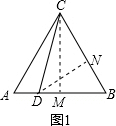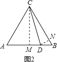 分析 过点C作AB的垂线,垂足为M.根据等边三角形以及等腰三角形三线合一的性质得出∠B=60°,AM=MB=$\frac{1}{2}$AB=2,利用三角函数求出CM=2$\sqrt{3}$.在Rt△CDM中利用勾股定理求出DM=$\sqrt{C{D}^{2}-C{M}^{2}}$=1.再分两种情况讨论:①D在线段AM上;②D在线段BM上.过D作DN⊥BC于N,分别求出DN、CN的长,再根据正切函数的定义即可求出tan∠BCD的值.
