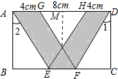 分析 由矩形的性质得出∠BAD=∠B=∠C=∠ADC=90°,AB=DC,BC=AD=16(cm),由ASA证明△ABE≌△DCF,得出BE=CF=6cm,求出AB=$\sqrt{3}$BE=6$\sqrt{3}$cm,∠EAH=60°,证明△GOH是等边三角形,得出OG=GH=8cm,作OM⊥GH于M,则GM=4cm,OM=4$\sqrt{3}$cm,阴影部分的面积=矩形ABCD的面积-△ABE的面积-△DCF的面积-△GOH的面积,即可得出结果.