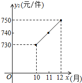 | 价格y1(元/件) | 560 | 580 | 600 | 620 | 640 | 660 | 680 | 700 | 720 |