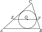 如图,O是△ABC的内心,过点O作EF∥AB,与AC、BC分别交E、F,若AE=3,BE=2,则EF的长是