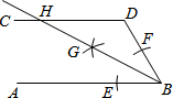 6.如图,AB∥CD,以点B为圆心,小于DB长为半径作圆弧,分别交BA、BD于点E、F,再分别以点E、F为圆心,大于$\frac{1}{2}$EF长为半径作圆弧,两弧交于点G,作射线BG交CD于点H.若∠D=116°,则∠DHB的大小为32度.
