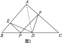 分析 (1)连接AD,易证四边形AEPF是矩形,可得EP=AF,即可求得AF=PE=BE,即可证明△FAD≌△EBD,可得结论;