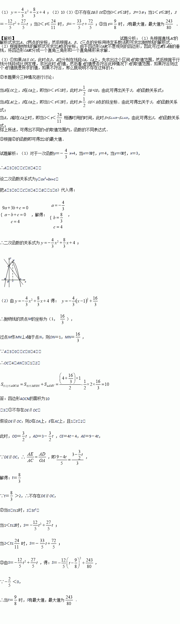 C→A的路线运动,当点D、E两点相遇时,它们都停止运动,设D,E同时从点O出发t秒时,△ODE的面积为S,