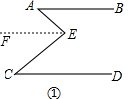 分析:在①中过点E作EF∥AB,再结合平行线的性质可得到∠AEC=∠A+∠C;在②中设AE交CD于点F,根据平行线的性质和外角的性质可求得∠A、∠E、∠C之间的关系.