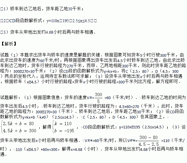 (1)轿车到达乙地后,货车距乙地多少千米?