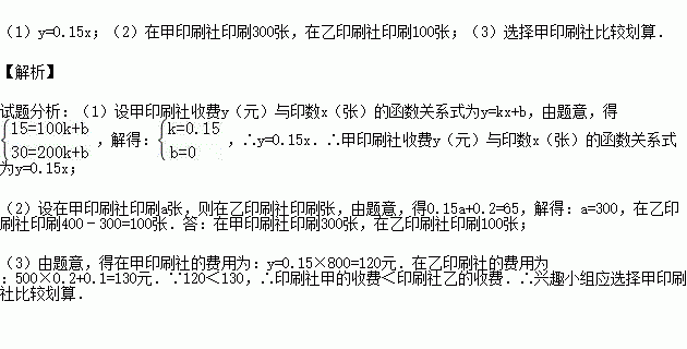 (3)活动结束后,市民反映良好,兴趣小组决定再加印800张宣传单,若在甲、乙印刷社中选一家,兴趣小组应选择哪家印刷社比较划算?