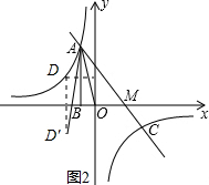 (4)如图2,当x=-2时,y=$\frac{-4}{-2}$=2,得到D(-2,2),