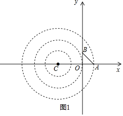 (2根据已知条件得到A(1,0),B(0,1),如图1,当圆过点A时,得到C(-2,0),如图2,当直线AB与小圆相切时,切点为D,得到C(1-$\sqrt{2}$,0),于是得到结论;如图3,当圆过点A,则AC=1,得到C(2,0),如图4,当圆过点B,连接BC,根据勾股定理得到C(2$\sqrt{2}$,0),于是得到结论.