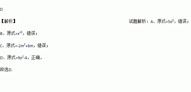 C. ﹣2m(m﹣3)=﹣2m2﹣6m D. (﹣3a﹣2)(﹣3a+2)=9a2﹣4