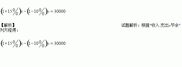 元,而今年收入比去年收入多15%,支出比去年少10%,结果今年结余30000元,根据题意可列出的方程为___________.