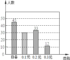 £¨2£©0.1ÔªµÄÈËÊýΪ£º120-45-33-12=30£¨ÈË£©£¬ÌõÐÎͳ¼ÆÍ¼ÈçͼËùʾ£¬![]()