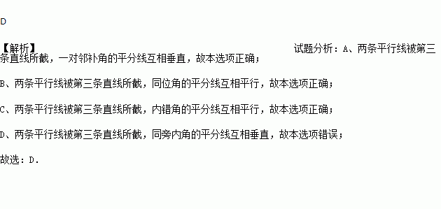 C. 一对内错角的平分线互相平行 D. 一对同旁内角的平分线互相平行