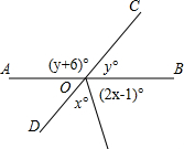 如图,直线AB,CD相交于点O,根据图示条件,求出x.
