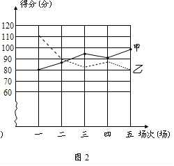 ½â´ð ½â£º£¨1£©ÒÒ¶ÓµÄÎ峡±ÈÈü³É¼¨µÄÕÛÏßͼ£¬Èçͼ2ÖÐËùʾ£®![]()
