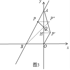 如图3,延长PQ到点P′,使PQ=P′Q,则P′即为点P关于BQ的对称点,过P′作P′H⊥y轴于点H,![]()