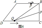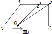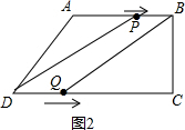 (2)当四边形PBQD为平行四边形时,点P在AB上,点Q在DC上,如图2,![]()