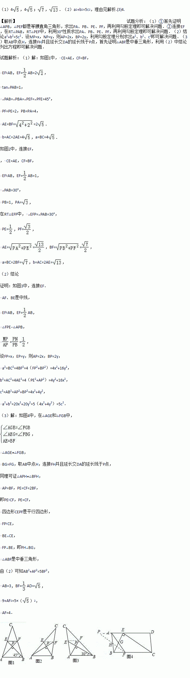 (3)如图4,?ABCD中,E、F分别是AD、BC的三等分点,且AD=3AE,BC=3BF,连接AF、BE、CE,且BE⊥CE于E,AF与BE相交点G,AD=3