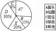 | 项目 | A音乐 | B绘画 | C田径 | D球类 | E其他 |