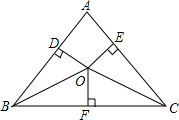 4.如图所示,在△ABC中,O为∠ABC,∠ACB的平分线的交点,如果OD⊥AB,OE⊥AC,OF⊥BC,垂足分别为D,E,F,OD与OE是否相等?为什么?