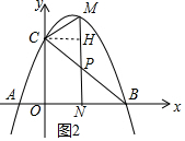 (3)过点C作CH⊥MN,垂足为H,设M(m,-m2+2m+3)(0<m<3),则P(m,-m+3),由PM=$\frac{3}{2}$PN,可求出m的值,从而得出点M、P的坐标,进而可求出MH、CH的值,再根据正切的定义,即可求出tan∠CMN的值.