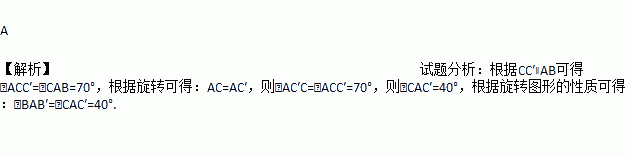 如图,在△ABC中,∠CAB=75°.在同一平面内,将△ABC绕点A旋转到△AB′C′的位置,使得CC′∥AB,则∠BAB′=( )