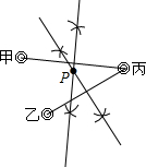 现有三个村庄甲、乙、丙,现要新建一个水泵站P,使它到三个村庄的距离相等,应建在何处?(尺规作图,不写作法,保留痕迹)