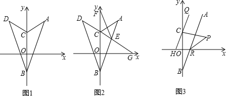 (3)过点C作QH平行于AB交x轴于点H,点Q在HC的延长线上,AB交x轴于点R,CP、RP分别平分∠BCQ和∠ARX,当点C在y轴上运动时,∠CPR的度数是否发生变化?若不变,求其度数;若变化,求其变化范围.
