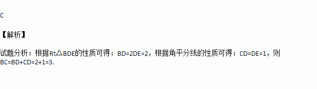 如图,在△ABC中,∠C=90°,∠B=30°,AD是△ABC的角平分线,DE⊥AB,垂足为E,DE=1,则BC=( )
