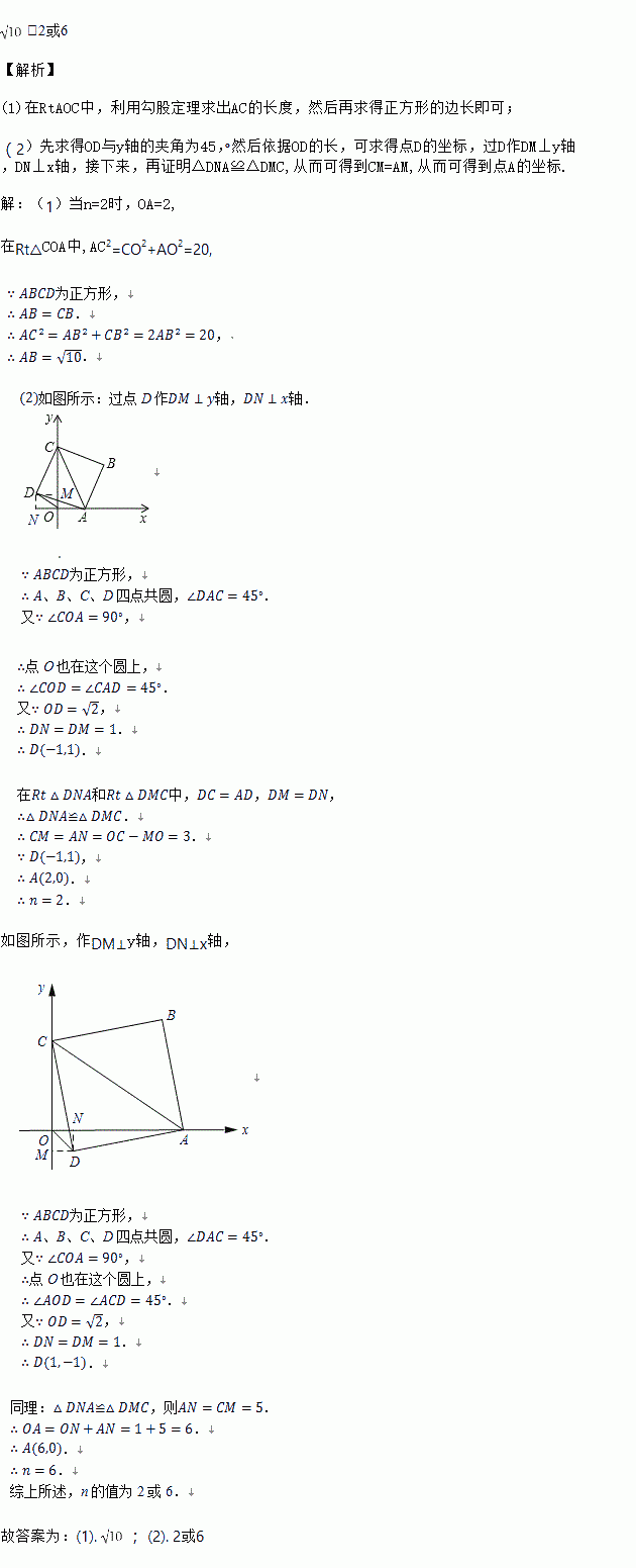 如图,点A是x轴上的一个动点,点C在y轴上,以AC为对角线画正方形ABCD,已知点C的坐标是,设点A的坐标为![]()