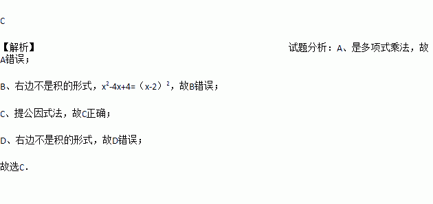 A. a(x+y)=ax+ay B. x2-4x+4=x(x-4)+4