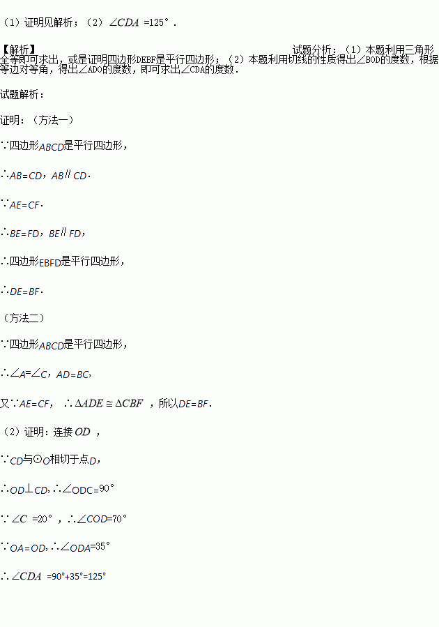 (1)如图,在平行四边形ABCD中,已知点E在AB上,点F在CD上,且AE=CF.