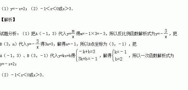 的图象相交于点A(﹣1,3)和点B(3,n).