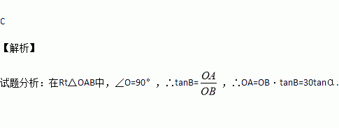 如图,为测量一棵与地面垂直的树OA的高度,在距离树的底端O点30米的B处,测得树顶4的仰角∠ABO为α,则树OA的高度为