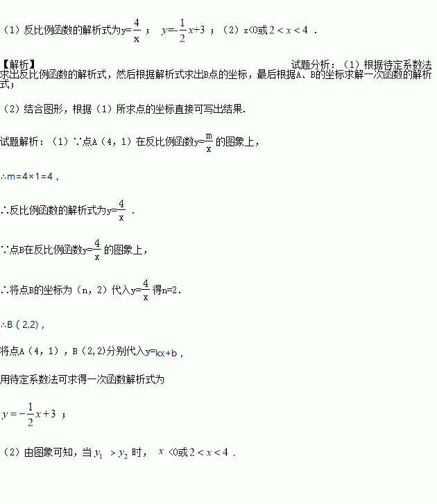 的图象相交于A、B两点,一次函数的图象与y轴相交于点C,已知点A(4,1),B(n,2))