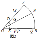 ·ÖÎö ·½·¨1£ºÔÚÉÈÐÎAOBÄÚ²¿ÏÈ×÷Ò»¸öÕý·½ÐÎDEFG£¬Ê¹µÃEFÂäÔÚBC±ßÉÏ£¬DÂäÔÚAO±ßÉÏ£¬½«Õý·½ÐÎDEFGÖð½¥·Å´ó£¬×÷ÉäÏßOG£¬½»»¡ABÓÚµãN£¬½ø¶øµÃµ½Õý·½ÐÎNQPM£»