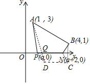 分析 作B关于x轴的对称点C,连结CN,作平行四边形PNCD,因为AB、PN为定值 所以PA+BN最小即可 因为BN=CN=PD 所以只要AP+PD最小 作直线AD交x轴于Q,当P与Q重合时,AP+PD=AD最小.