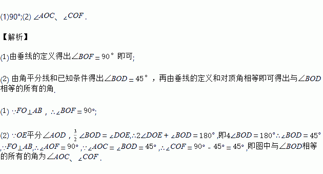 如图,已知直线AB,CD相交于点O,OE平分∠AOD,FO⊥AB,垂足为O,