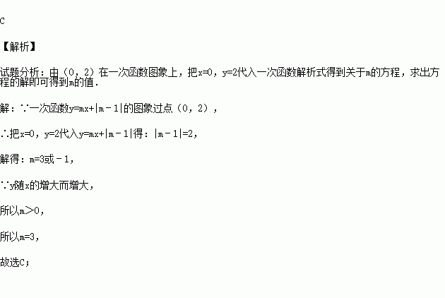 (2015秋•靖江市期末)一次函数y=mx+|m﹣1|的图象过点(0,2),且y随x的增大而增大,则m的值为( )