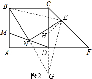 如图2,延长BN交CD的延长线于点G,连接BE、GE,过E作EH⊥CE,交CD于点H,