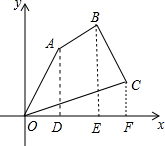 分析:分别过A、B、C作x轴的垂线,垂足分别为D、E、F,如图,根据三角形面积公式和梯形面积公式,利用四边形OABC的面积=S△AOD+S梯形ABED+S梯形BCFE-S△COF进行计算即可.
