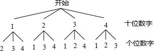 分析 首先根据题意画出树状图,然后由树状图求得所有等可能的结果与组成的两位数恰好是4的倍数的情况,再利用概率公式即可求得答案.