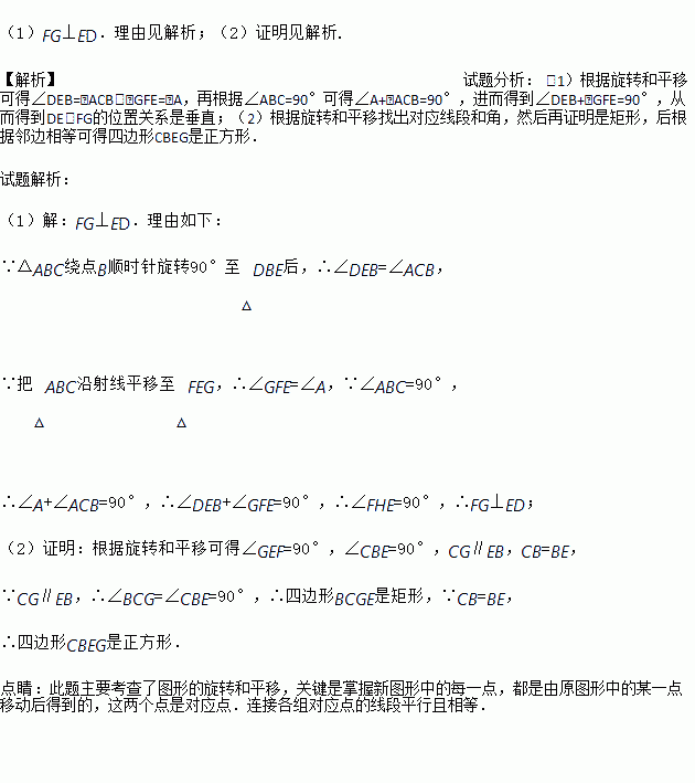 (2)连结CG,求证:四边形CBEG是正方形.