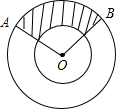 如图,两个同心圆的半径分别是5和3,∠AOB=140°,求阴影部分的面积.