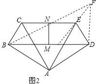 分析 (1)如图1,连接BN并延长,与DE的延长线相交于点F,由∠ABC+∠ADE=180°,得到BC∥DE,得到∠CBN=∠EFN,∠BCN=∠FEN,证出△CBN≌△EFN,得到BN=FN,EF=CB=AD,于是得到DF=DE+EF=AB+BC=AB+AD=BD,根据三角形的中位线的性质即可得到结论;
