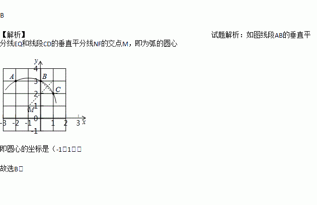 如图,在5×5正方形网格中,一条圆弧经过A,B,C三点,已知点A的坐标是(-2,3),点C的坐标是(1,2),那么这条圆弧所在圆的圆心坐标是( )