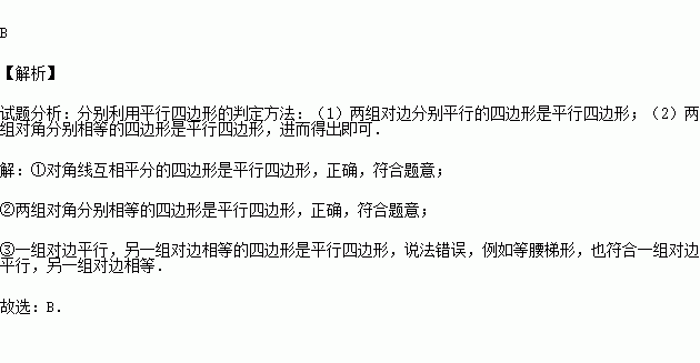 ③一组对边平行,另一组对边相等的四边形是平行四边形.