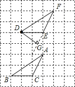 (1)在网格中作出△ABC经平移后的△DEF,使点B的对应点是点D、点C的对应点是点E;