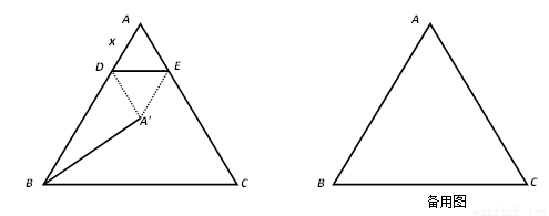 如图,在△ABC中,AB=AC=5,BC=6,点D为AB边上的一动点(D不与A、B重合),过D作DE∥BC,交AC于点E.把△ADE沿直线DE折叠,点A落在点A'处.连结BA',设AD=x,△ADE的边DE上的高为y.