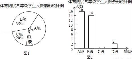 为了解某区九年级学生身体素质情况,该区从全区九年级学生中随机抽取了部分学生进行了一次体育考试科目测试(把测试结果分为四个等级:A级:优秀:B级:良好;C级:及格;D级:不及格),并将测试结果绘成了如图两幅不完整的统计图.请根据统计图中的信息解答下列问题: